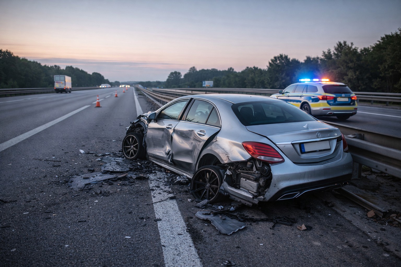 Ein 24-jähriger Fahrer war mit seinem Mercedes auf der linken Fahrspur in Richtung...